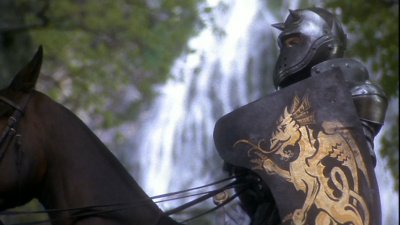 Respecto a los mencionados matices propios de la particular concepción del director, la más llamativa a mi juicio viene a ser cómo se permite la licencia de, en la segunda parte de la película, incluir y amalgamar al relato principal una segunda historia, la de la búsqueda del Grial, quedando plasmada aquí una muy interesante dualidad, una contraposición de dos antagonismos, de dos mundos opuestos: el barbarismo de los paganos, de ese universo medieval, contrapuesto al mundo cristiano, simbolizado por el Santo Grial, que representa en la película el único medio de redención y de recuperación de todos los ideales perdidos, del honor de los caballeros y de la salvación de la tierra, que pasa por los momentos más críticos, está a merced de poderosas y malignas presencias con poder superior al humano. Sin lugar a dudas, una muy interesante y significativa elección del elemento redentor, el elemento que se vuelve clave y fundamental durante la parte final del filme, el que reivindicará a los valerosos caballeros, para participar conscientemente en el magno enfrentamiento, y sabiendo que de encontrar la muerte en el campo de batalla, estarían materializando el máximo de los ideales como caballero, pues tendrían el honor de alcanzar la inmortalidad, la leyenda, a través del único medio que permite la entrada a esa categoría: la muerte defendiendo su ideal en combate.